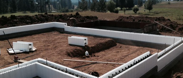- Данный тип является подвидом ленточного фундамента, который представляет собой монолитную конструкцию из арматуры и железобетона, погруженную наполовину в грунт, что является великолепной основой любой постройки;